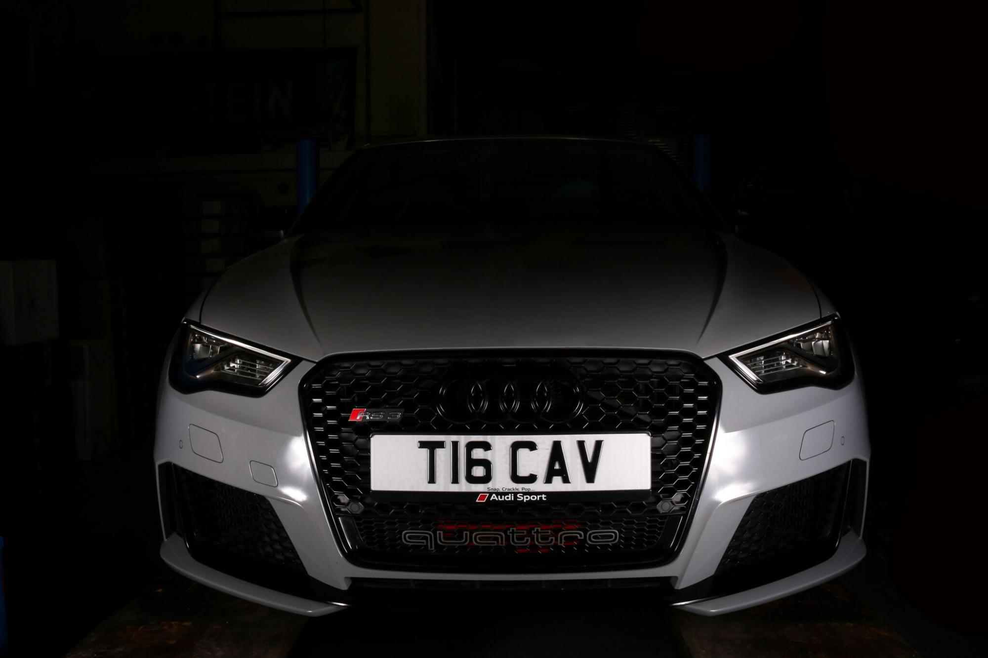 The RS3 8V core is a huge 640x250x100 and of bar and plate design. This gives it a huge 55% more surface area than stock, and an even more impressive 94% more volume. The end tanks are made with integrated pipes in order to retain the stock boost hoses, though you can also replace the hoses with our FMKT024 boost hose set if you so wish. Just like on the 8P chassis, we supply a genuine Audi RS3 crash bar which we modify in house in order to accept the new larger core, then finish both the crash bar and core in our standard black crackle finish powder coat for maximum longevity.