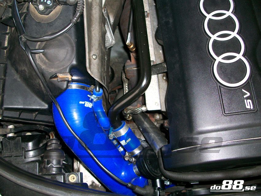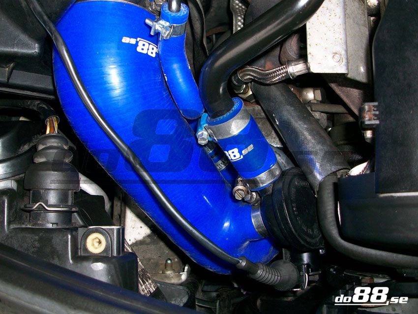 If you want to install this hose together with the original air filter box you need to shorten the silicone hose in that end. The hose needs to be cut about 100mm (easy to do). See the cutting instruction in the photo gallery.