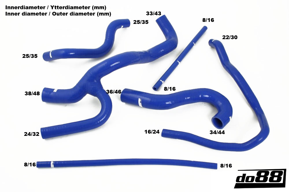 A hose kit developed by do88 to replace OEM radiator and cooling system hoses!