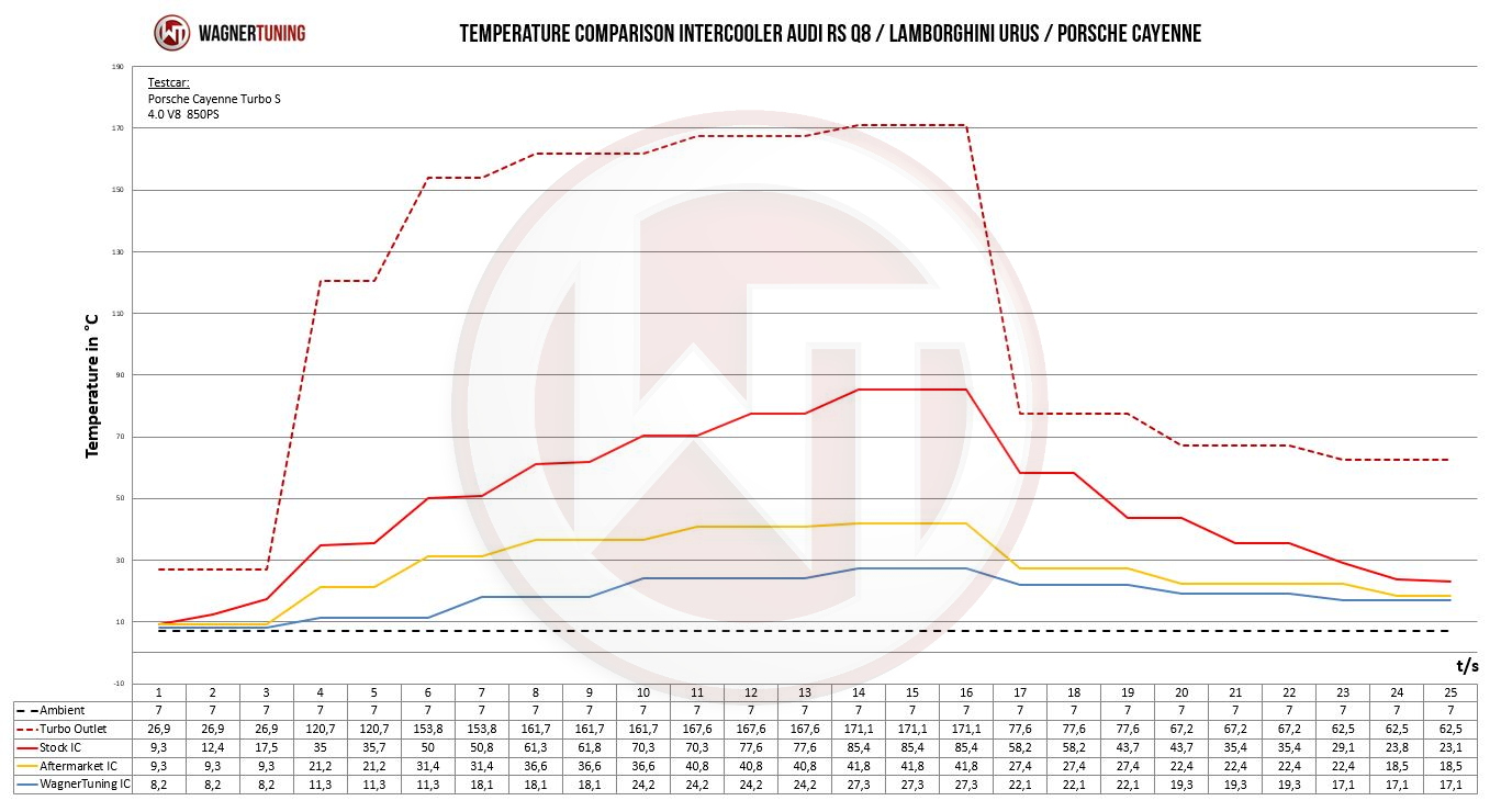 Our latest generation of high performance intercoolers take you to a new level of performance. With intercooler core dimensions of 2 x [270mm x 296mm x 115mm] and an impressive charge air volume of 18.4 liters, they offer an incredible 50% more airflow compared to the stock intercooler. In the process, the specially developed performance high-performance core provides superior cooling characteristics and won't let your engine down, even under extreme conditions. With a weight of just 9.0 kg per intercooler, we are setting new standards in lightweight design. The CAD-developed free-form end boxes made of high-quality cast aluminum guarantee optimum internal air flow and impressive pressure resistance of up to 6 bar (tested). Our reinforced silicone hoses and aluminum charge air tube provide excellent flow characteristics while maintaining high pressure resistance. In this way, we minimize back pressure and maximize the performance of your vehicle. To ensure long-lasting durability, all of our intercoolers feature a high-quality anti-corrosion coating with excellent heat conduction properties. This keeps your cooling at optimal levels at all times, and you'll benefit from a significant performance boost that will set you apart from the competition.