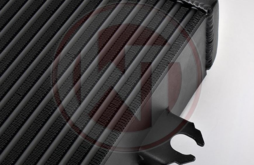 The Competition Intercooler has the following core size (530mm x 220mm x 95mm= 11.080cm³) , providing a 30% larger frontal area and 100% more volume compared to the stock mounted intercooler. Our engineers have increased the intercooler core size and efficiency, as well as improving the endtank design to remove any OEM bottlenecks, resulting in increased charge cooling properties. This intercooler uses a new kind of our WAGNERTUNING competition intercooler core which is made specifically for this application. Constructed of the highest quality Tube and Fin intercooler cores with inside turbulators combined with cast aluminum endtanks optimized by CFD for best possible internal airflow. The result is excellent cooling properties. This Intercooler Kit is the best choice when it comes to performance gains and low intake temperatures and also the right thing for racing. All of our intercooler use an anti corrosion protective coating with perfect thermal heat dissapating character. Optimal cooling with clearly more power. Kit is ready for installation, 100% perfect fit. Fitment is easy, replacing the OEM intercooler. All of our products undergo rigorous quality control.