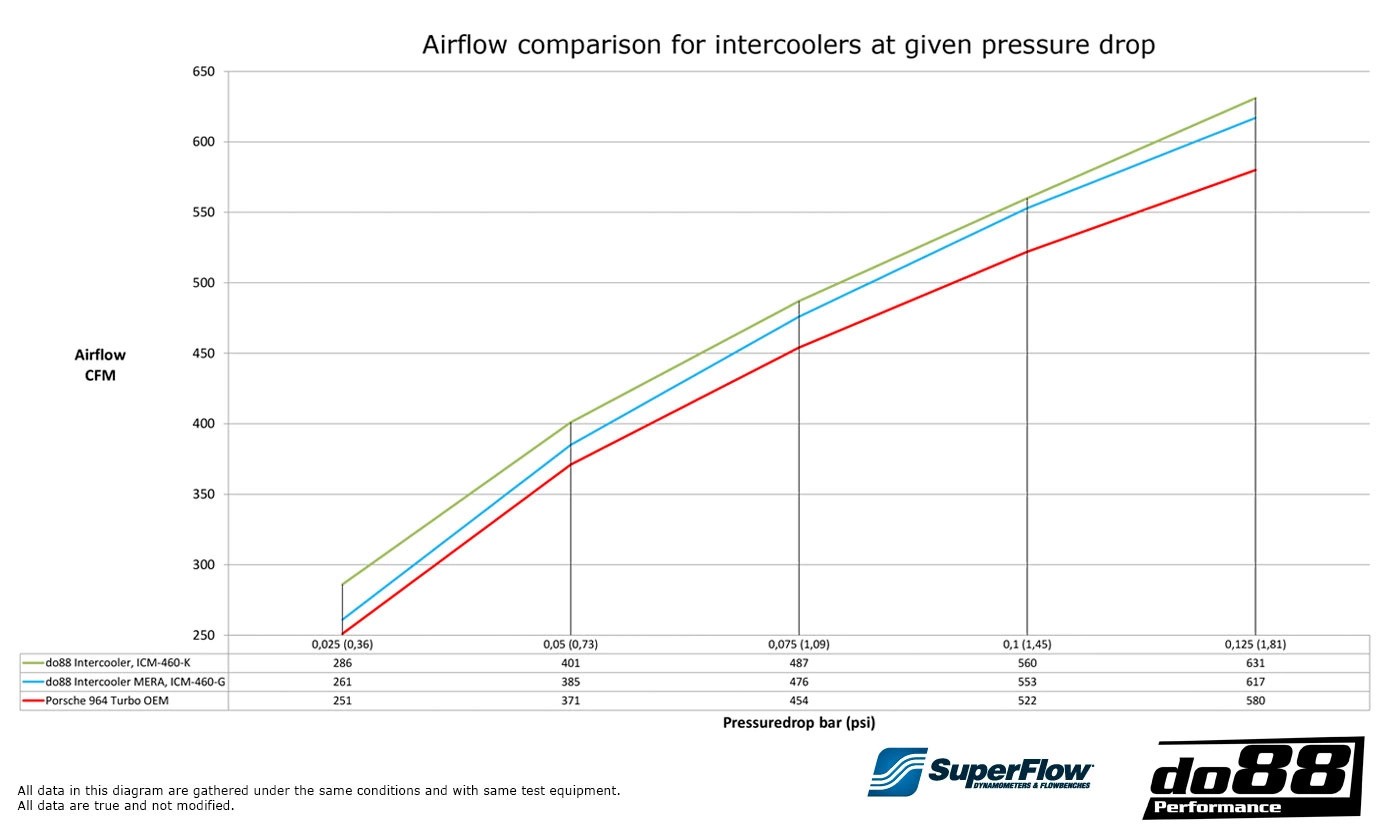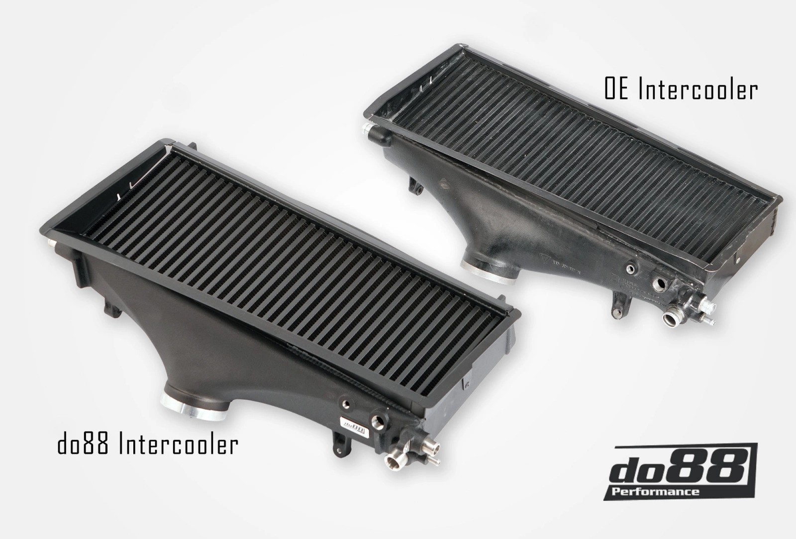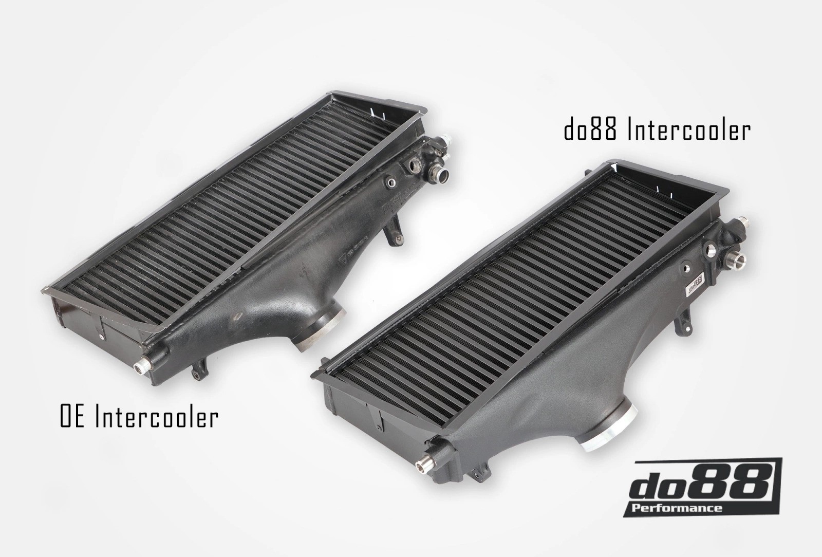 In response to these challenges, do88 has developed an intercooler with a primary goal to replicate the original look as closely as possible. Our design ensures that all fastening points, air guide, hose connections, and sensor ports are exactly where they should be, mirroring the original unit. Our intercooler have the same type of core structure as the original, featuring a 63mm (2 1/2") thick Tube & Fin core. Our development used an intercooler from the highly exotic Porsche 964 Leichtbau as the blueprint for all shapes and dimensions. Not only did we aim to match the stock appearance, but our intercooler also beats the original in cooling performance and pressure drop, ensuring that functionality does not take a back seat to aesthetics.