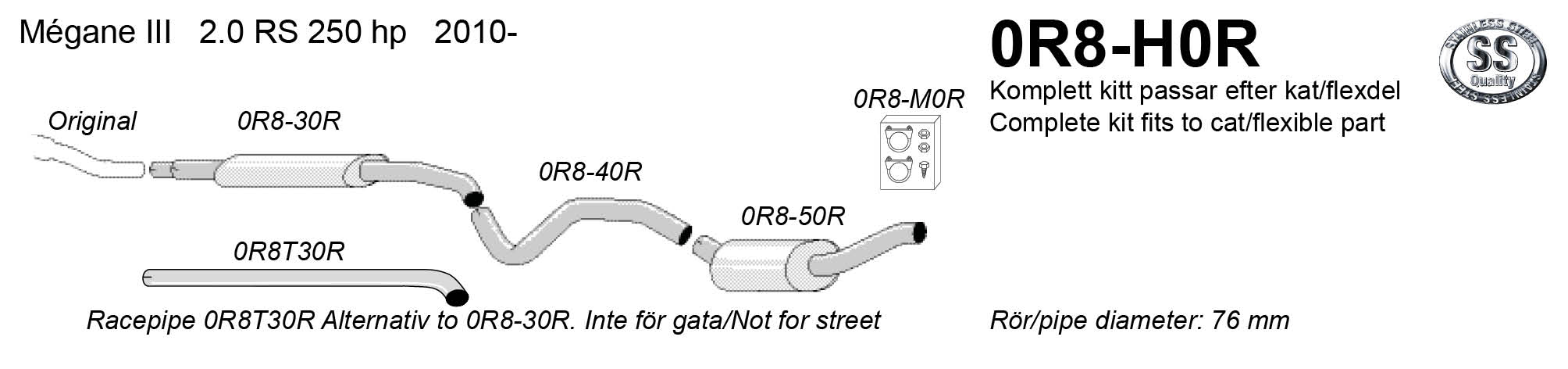 SIMONS sport kipufogó katalizátortól RENAULT Megane III RS 2010-