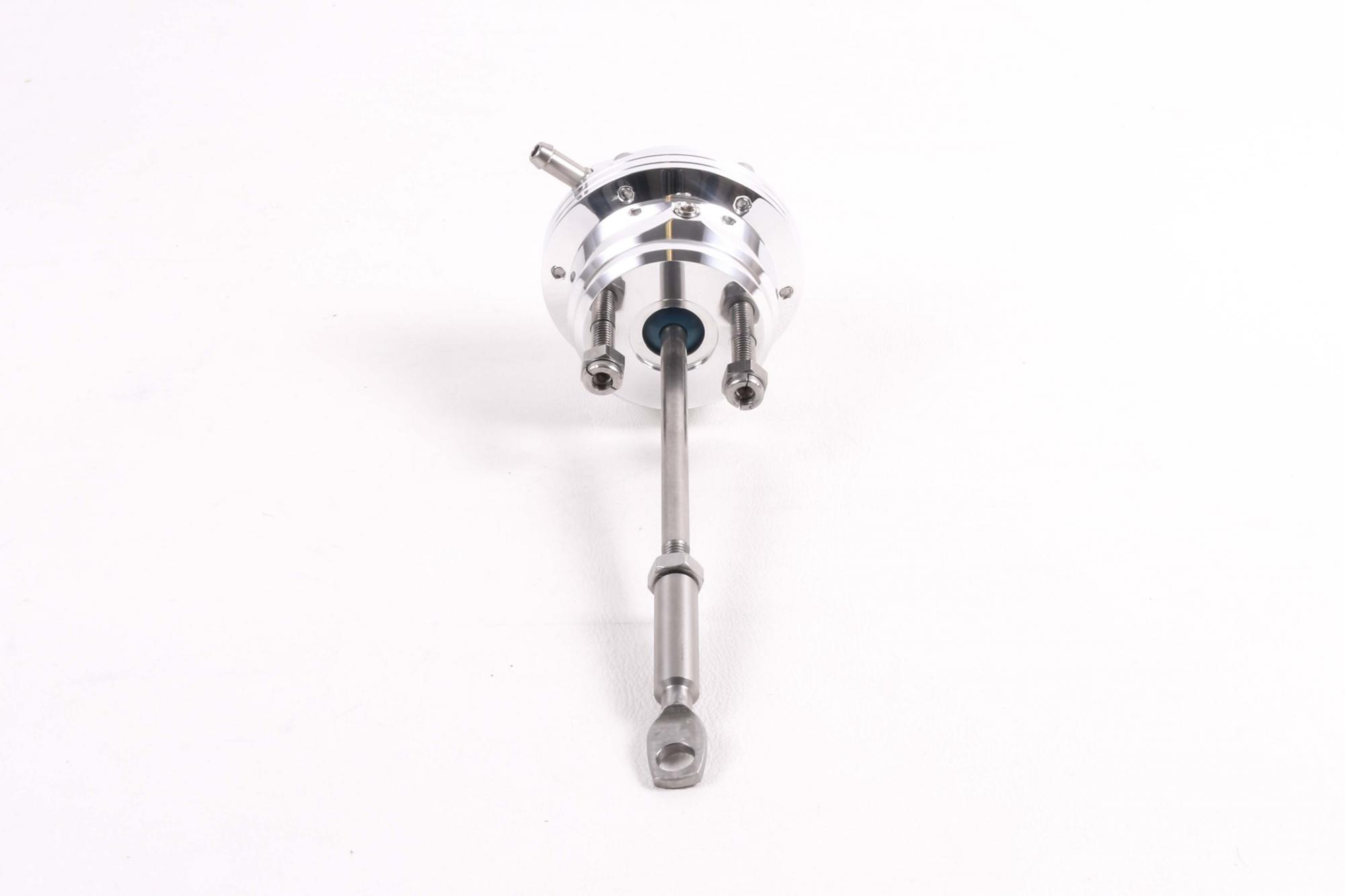 This wastegate actuator is assembled with a predetermined actuator spring suitable for or slightly above factory boost levels. The actuator can be assembled with a stronger spring upon request. Please contact us directly concerning this process and we will be happy to help with your requirement. It is designed and built with the intention of increasing the boost output of a turbocharged system. We cannot guarantee compatibility with all applications, nor the ability to increase the boost output beyond a level that is within the parameters set by the engine-management-system of the given vehicle at the time of installation, whether that system is factory or aftermarket.