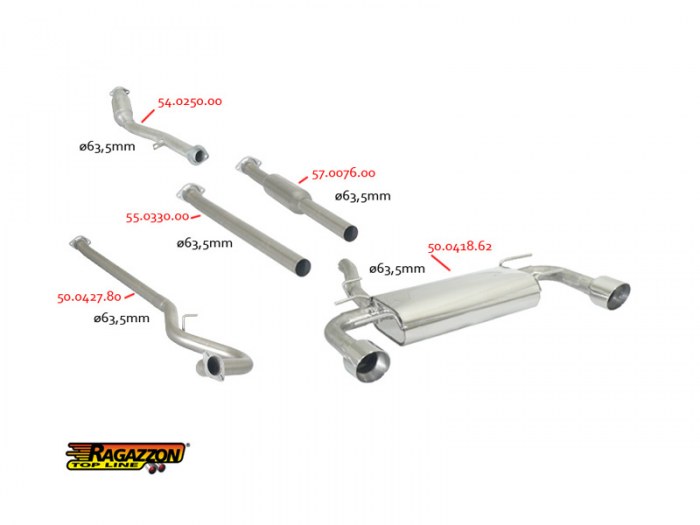 Cut and connection - The reduction for the installation on the original centre silencer is included.