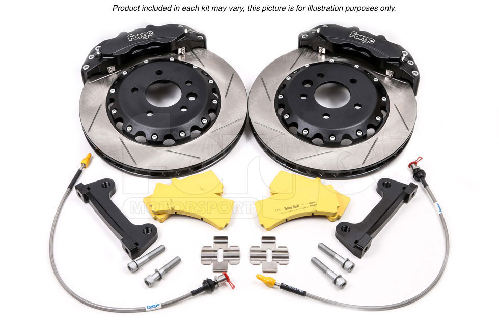 A Big Brake kit with 6 pot calipers and 356 x 32mm ventilated discs. The discs are grooved to remove braking residuals and maintain optimum performance. Included in the kit are Forge braided brakes hoses, mountings and pads.
