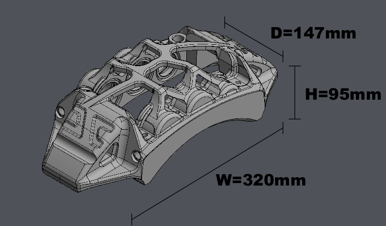 2 pcs CNC machined, forged aluminium 6 pot caliper with dust cover