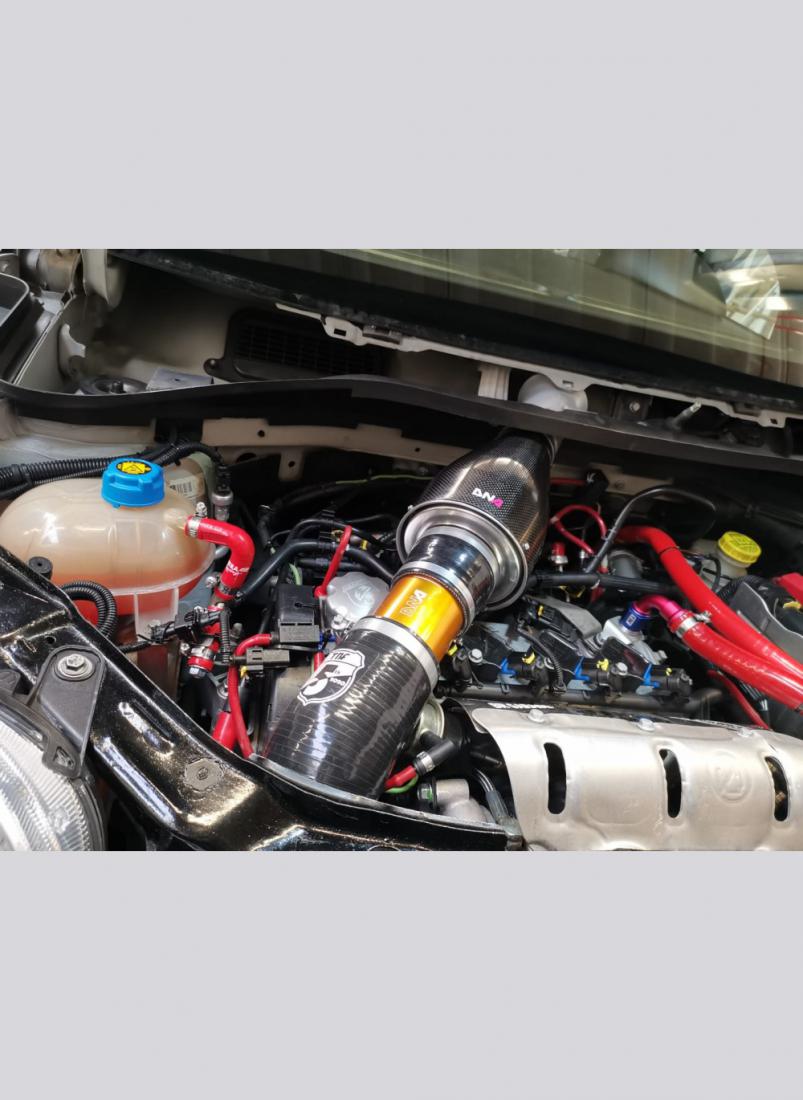 •The cold air feed is drawn in from the scuttle panel, this maximises the density charge of air entering the turbo intake. This means more oxigen and consequently more power. Furthermore, the positioning in this compartment protects the filter element from the dirt that is normally generated in low induction type and catches “ calm” fresh air that is not moving.