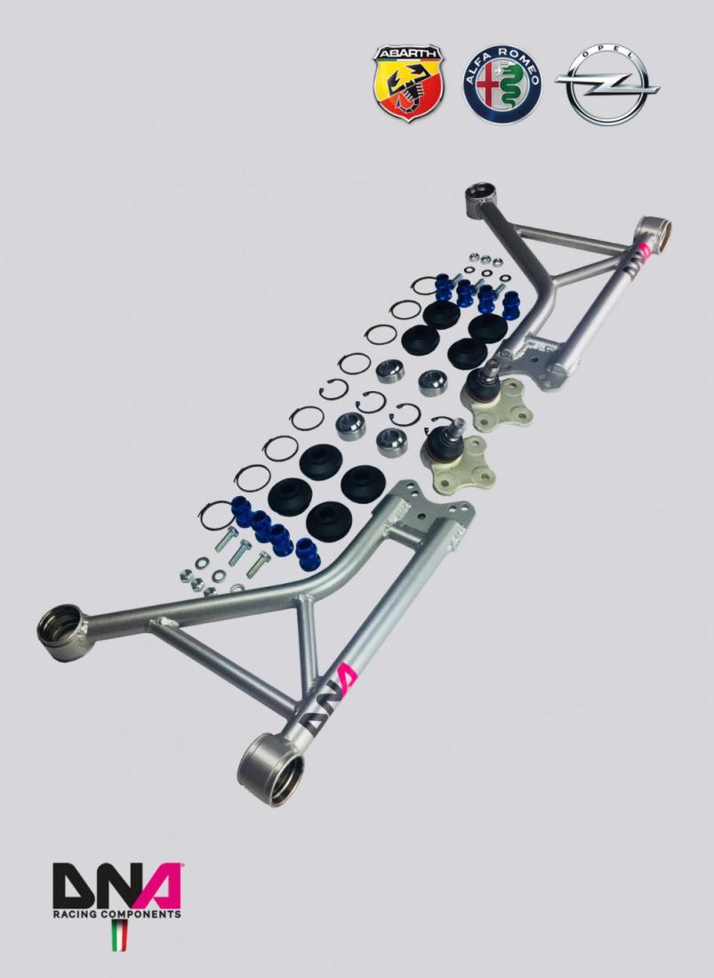This suspension arms kit intended for track day, road and racing applications, has been designed to improve the stiffness and strength of the arms, to decrease weight of the masses on the ground and to eliminate unwanted movement of the wheels, caused by the excessive elasticity of the original silent blocks. The system includes high-quality motorsport uniballs. The kit also includes a new system of protection of the uniballs against dirt that makes arms maintenance-free and ideal for road use. Results: improvement of the handling and of the steering system, better control of the characteristic angles of the suspension, improvement of braking and especially elimination of the tendency to "wave" during the acceleration phase. A MUST for cars over 180 hp. The kit includes the front arms, two racing uniballs together with their protections against dirt and all the hardness needed