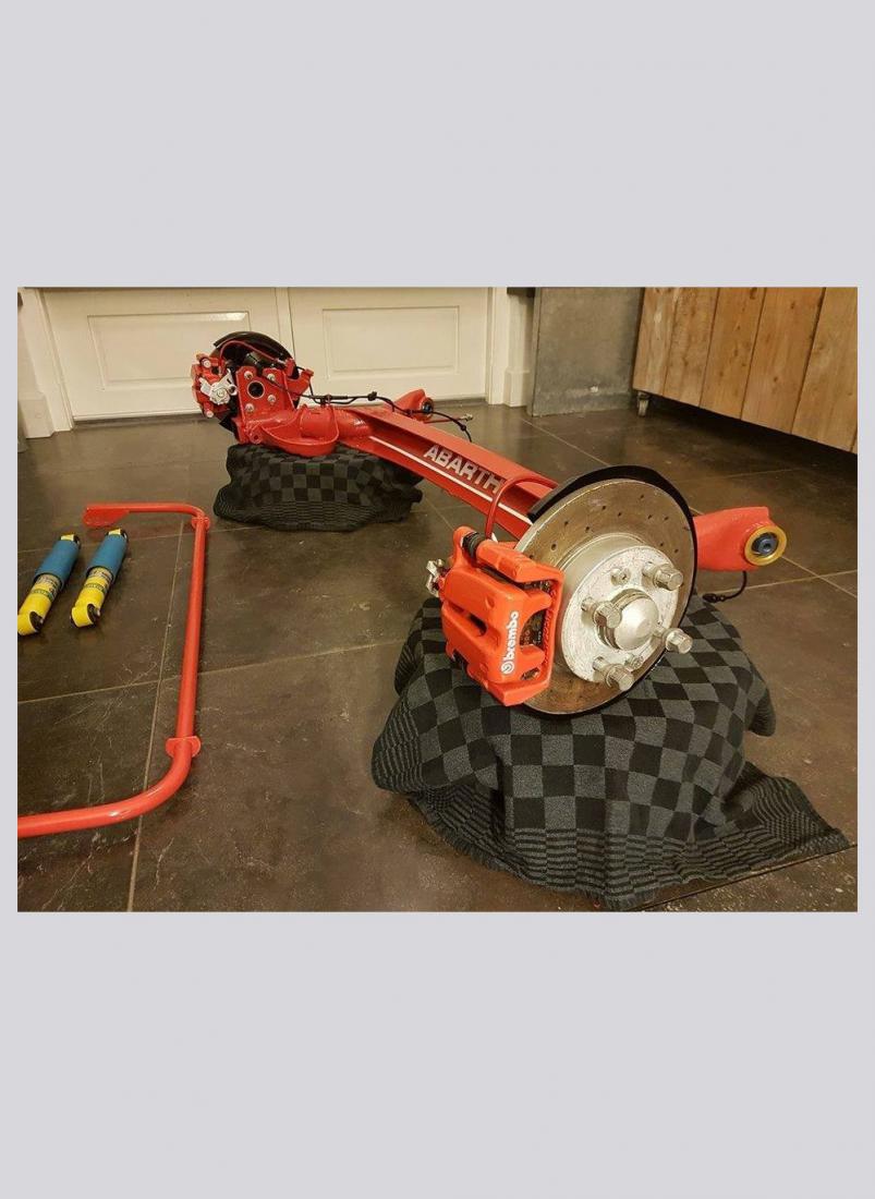One of the major problems of the Fiat 500 Abarth is the imprecision of the rear axle. This phenomenon occurs especially under braking and entering corners. Some typical comments of Abarth owners are:"It seems to have to tame a snake who wants to escape from the hands"or even "it seems that the back float or write." This phenomenon is really harmful in sporty and dramatically increase lap times making driving difficult and sometimes dangerous. This is due to the fact that the rear axle, of the original series, is mounted to the body via silentblocks. The latter allow a limited movement which generates the movement of the wheels generating the phenomena described above. The kit consists of motorsport uniball, their seats and spacers all made of anodized Aluminum and all the necessary components for assembly. This kit will drammatically eliminate all the problems previously described.