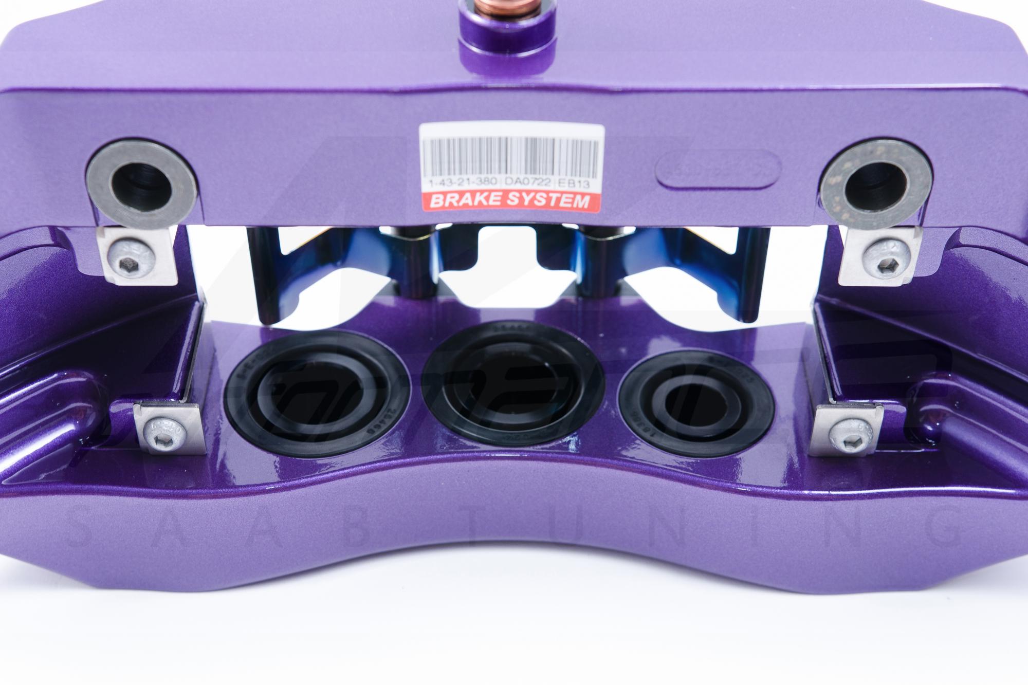 2 pcs CNC machined, aluminium calipers with 6 pots in purple