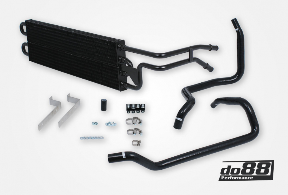 | do88 proudly presents this self-developed auxiliary DSG radiator for VW Golf GTI Mk7 (MQB)! The VW Golf GTI / GTI Performance Pack (220 & 230hp) has no auxiliary radiator for the DSG gearbox. This can cause gearbox temperature problems on a tuned car or during track driving. The VW Golf R / GTI Clubsport / ED40 already has a stock auxiliary radiator for the DSG gearbox to solve the temperature problem. The same radiator setup these models have can be installed on a GTI but it is expensive to do since the entire front bumper etc needs to be changed. The do88 auxiliary radiator pre-cools the cooling water that goes to the gearbox heat exchanger. It is installed in the front of the AC condenser. Hoses, brackets and all other installation hardware are included. The included installation instructions show the most important steps. Core dimensions (Length x Height x Thickness): 446 x 131 x 26,5mm Total dimensions (Length x Height x Thickness): 652x131x202mm For installation instructions Click here! |
