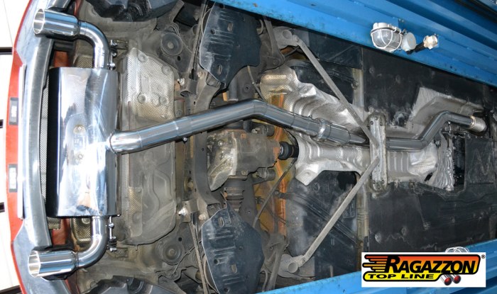 Cut of the original centre silencer. The installation on the original rear silencer requires the welding of the included coupling.