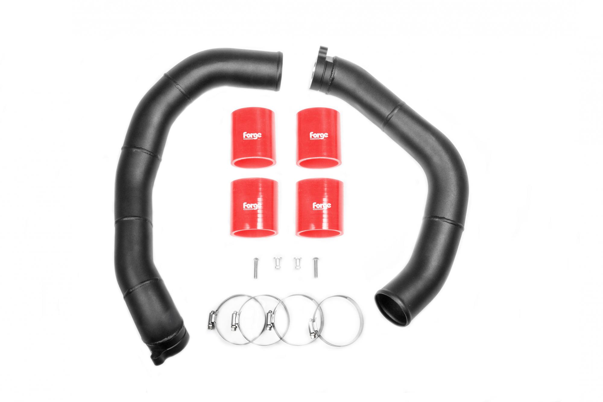 - Kit includes hardpipes and silicone hoses to allow fitment to OEM chargecooler or Forge chargecooler