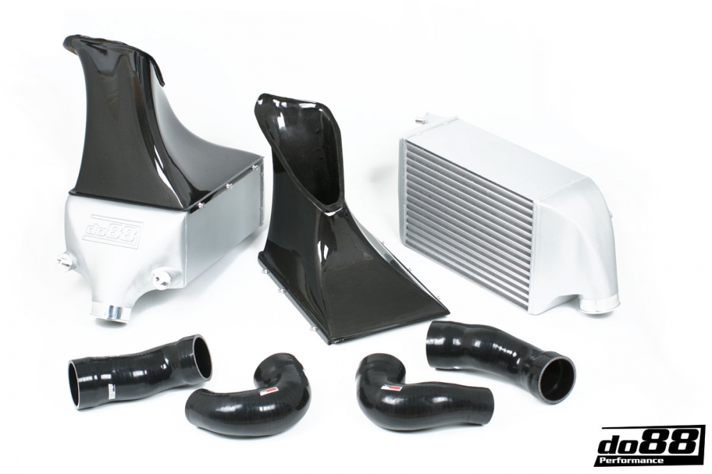 After do88 market research in the beginning of their intercooler development for 997 generation 2 they understood that not many of the upgrade products on the market are really upgrades but more at the same level as the 997.2 standard intercoolers or sometimes even lower. So already from the beginning do88 realized that they could not sacrifice anything to keep the cost down they just had to do the best possible in the space available in the car! First of all they made a lot of investigation and comparisons between different core types and at last really fell for a high density motorsport core which have great cooling efficiency among with a low weight. With a great core in place do88 started to refine the end tank design which brought them to a decision to make cast end tanks as they could then control the air flow distribution over the core in a very precise way. This is very important as a good tank design will be beneficial for both pressure drop and cooling efficiency. To be able to fit an intercooler with appropriate thickness for the job it was also necessary to design a new upper ambient air guide. This was designed in our 3D scanned environment to ensure perfect fit to the vehicle integrated air guides and our intercooler. To achieve the best air flow distribution over the core we made intercooler end tanks with 70 mm (2 3/4 inch) connections which then made it necessary to designed custom silicone hoses for all positions. The hoses are 3D designed with airflow in mind where do88 CFD tested each hose during development to ensure best possible flow rate of all parts! The hoses between turbocharger and intercooler are special silicone hoses that can withstand up to 240°C (464°F) continuous temperature! Another important aspect for cooling performance are to use all ambient cooling air available, to optimize this part we include air block rubber seals for all surfaces where the ambient air guides must seal properly.