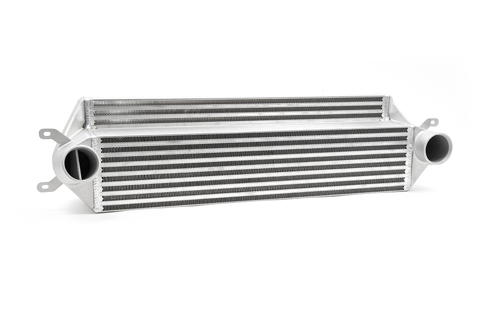 Our industry leading bar and plate core is an increase of 113% in volumetric capacity and an increase of frontal surface area of over 57% than the OEM intercooler/Heat exchanger. FMINT28 is the largest currently available on the market. The inlet and outlet sizes have both been increased in diameter, the hot side from 50mm to 60mm giving a volumetric increase of over 44% from the OEM intercooler, and the cold side from 50mm to 63mm giving a volumetric increase of over 59% from the OEM intercooler.