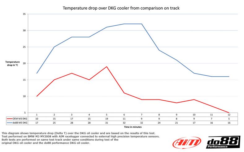 - 18% lower oil temperature past the oil cooler: 74°C vs. 90°C! See diagram in the photo gallery