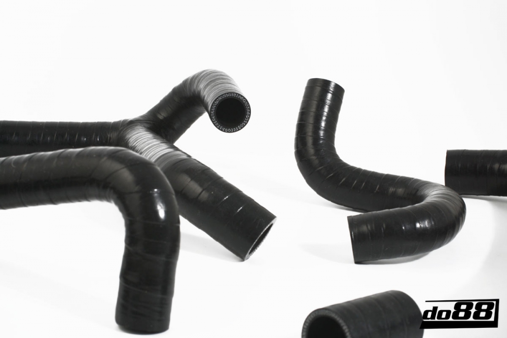 These hoses are entirely manufactured in high quality silicone for best finish and durability. With three to five layers of armory, depending of the inner diameter, the hoses withstand high pressure rates and high temperatures for a long time. The original hoses are manufactured in rubber that not seldom cracks from age. This is the durable solution for you that in addition improves the looks!