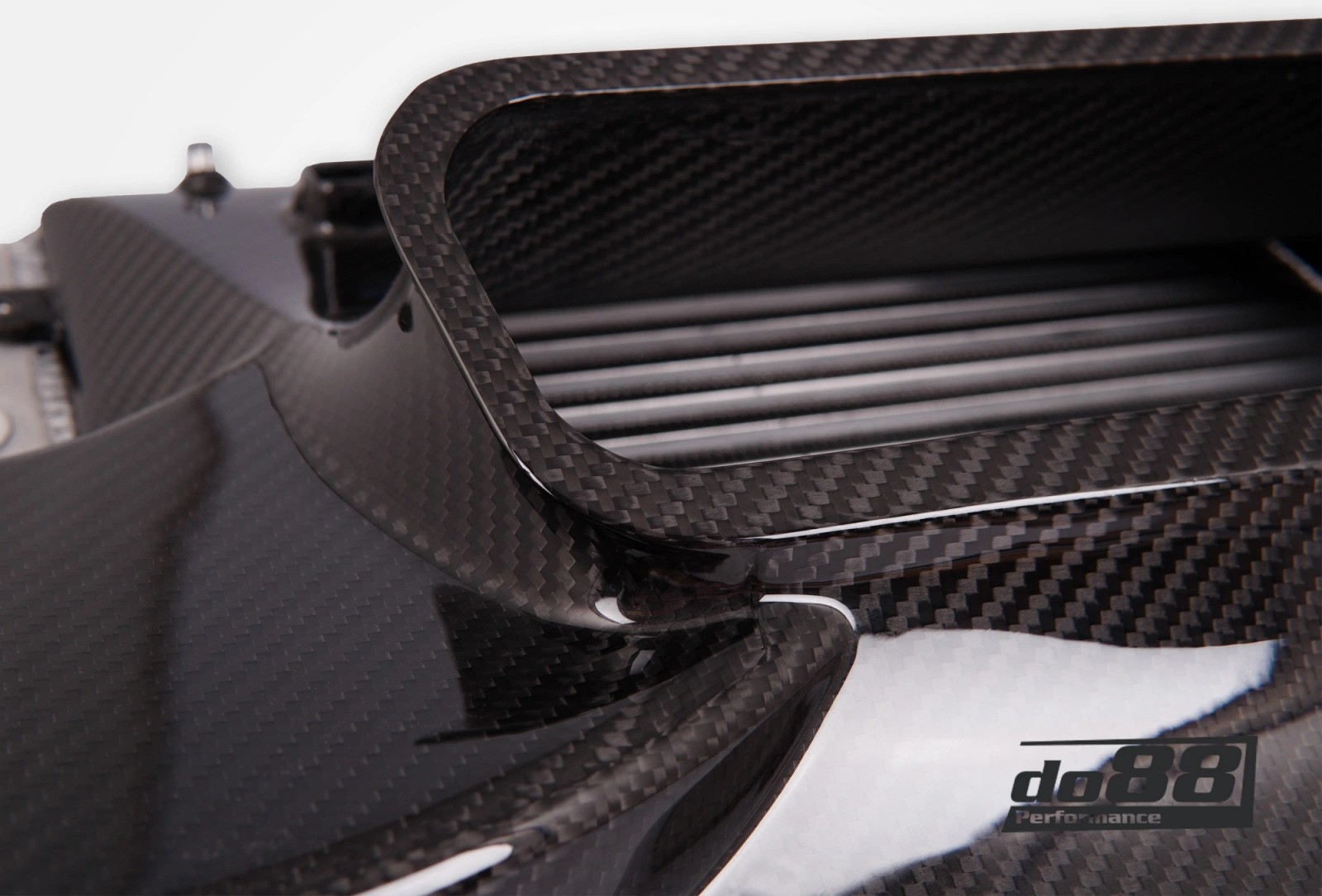 A légterelők vákuum-infúziós, prepreg karbonból készülnek, és minden darab rögzítő hornyokkal van ellátva a légcsatornákhoz, akárcsak az OE bitek. Bármilyen összetettek is a formák, még mindig garantáljuk a tökéletes illeszkedést! Megfelelő gumitömítéssel vannak ellátva, ahol ez szükséges ahhoz, hogy megakadályozzák a hűtőlevegő eltávozását a magon.