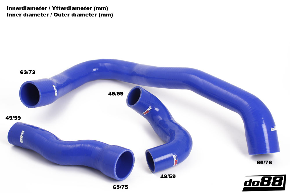 These hoses are entirely manufactured in high quality silicone for best finish and durability. With three to five layers of armory, depending of the inner diameter, the hoses withstand high pressure rates and high temperatures for a long time. The original hoses are manufactured in rubber that not seldom cracks from age. This is the durable solution for you that in addition improves the looks!