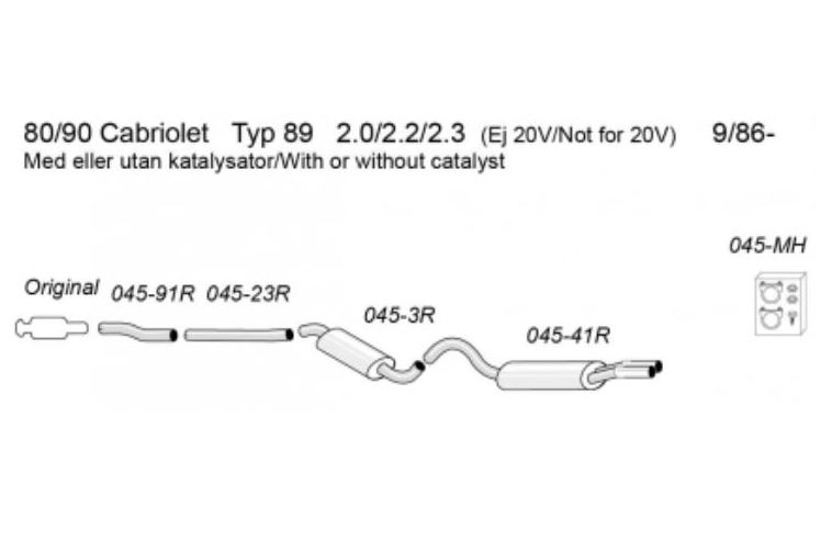 Audi 80/90 (Typ89) - September 1986 - 1991 - all Cabrioet versions with 2.0, 2.2 and 2.3 NOT 20V Petrol enginesSize of Chrome tailpipe: 2x70 mm