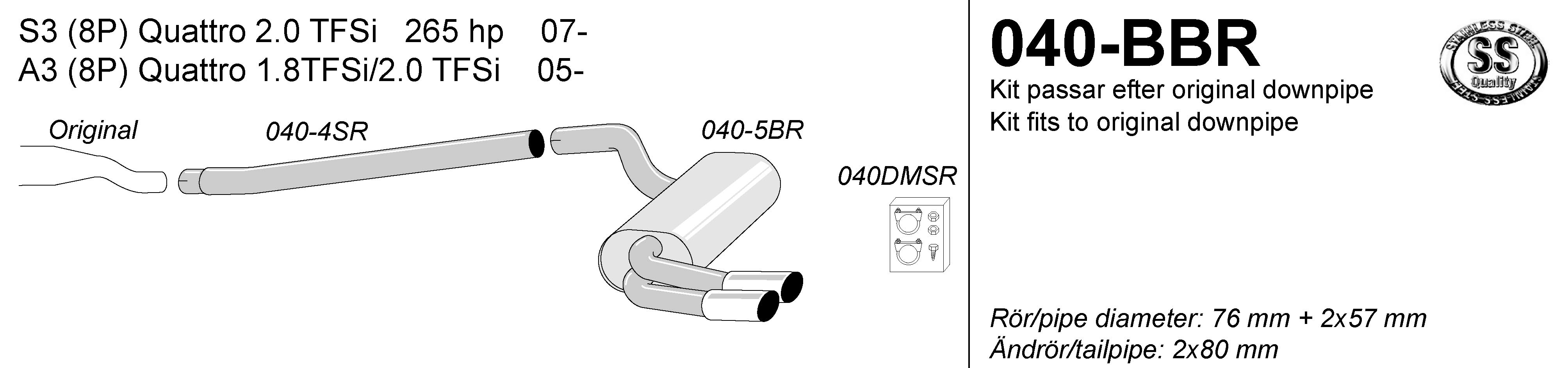 SIMONS Rear Sport Exhaust Silencer AUDI A3 S3 Quattro 2005-