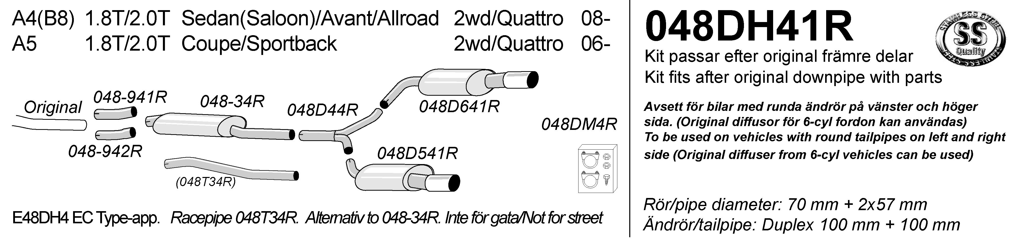 SIMONS katalizátor utáni dupla sport kipufogó AUDI A5 1.8T 2.0T 2006-2016