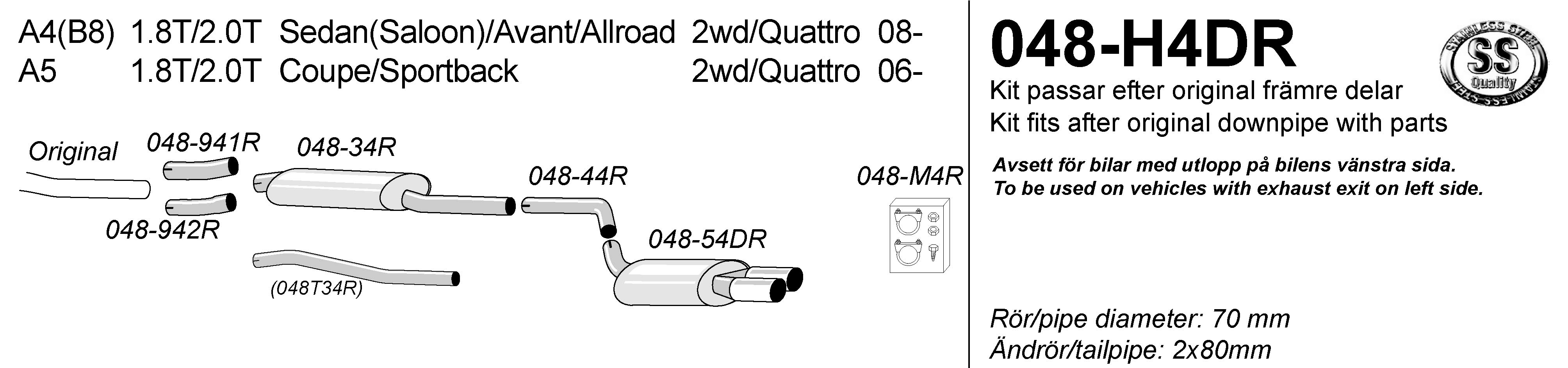Audi A4 (B8) - 2008-2016 - minden 2WD és Quattro szedán, kombi és Allroad változat 1.8T és 2.0T benzines motoral
