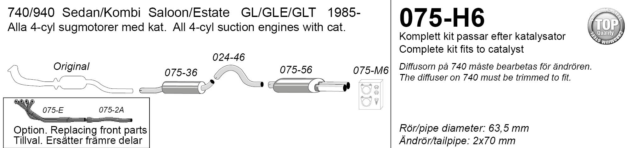 Volvo 740 - from 1985 - all GL GLE GLT versions with 4 cylinder engines with cat