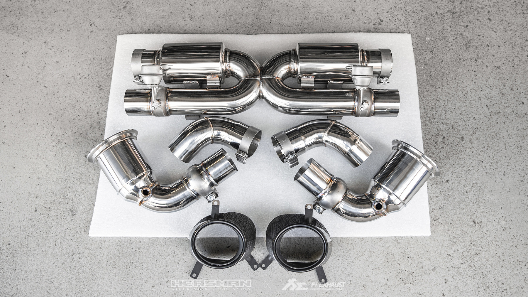 Frequency Intelligent Valvetronic Exhaust System technology offers our cutting-edge intelligent ECU exhaust control valve, with an emphasis on the optimization of both acoustics and performance. It is a testament to our philosophy of the ultimate union of comfort and performance experience for the driver and passengers. When the valves are fully open for maximum flow and power, it creates an exotic tone and allows for high performance. When the valves are closed, volume is reduced for a more low-profile comfortable drive. With our latest technology, just one click on the remote control will setup any rpm to automatic mode. The automatic mode enables the system to detect the engine RPM to intelligently switch comfort/racing exhaust profiles. Users can also opt to simply switch valve on/off mode as desired by remote control when driving. Furthermore, the muffler internals are individually designed and fabricated for each car model, a perfect testament of our insistence on producing the best customized products in the market with our Valvetronic technology for ultimate performance. Each product has its own unique sound acoustics and performance, all to add the "extra" in extraordinary.