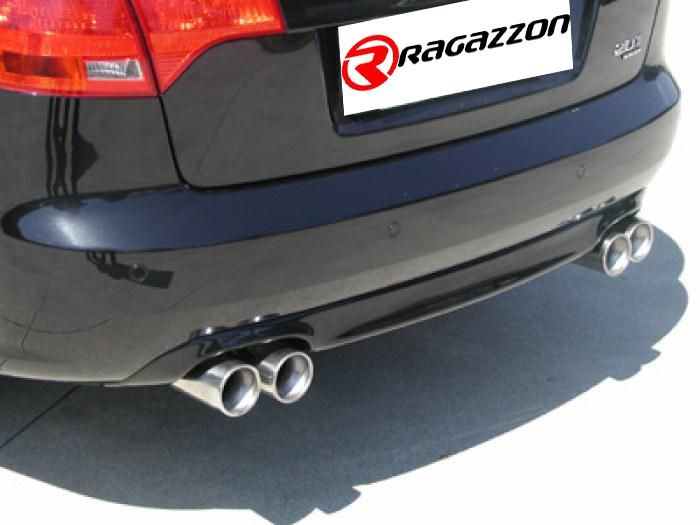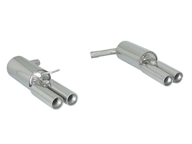 Ragazzon Stainless steel rear silencer left/right each with round tail pipe 2x80 mm staggered - Original rear bumper modification is required - Fits to Rieger rear apron