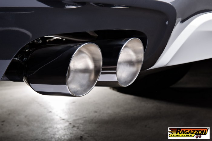 Ragazzon Stainless steel rear silencer left/right each with round Sport Line tail pipe 2x80 mm staggered - Original rear bumper modification is required