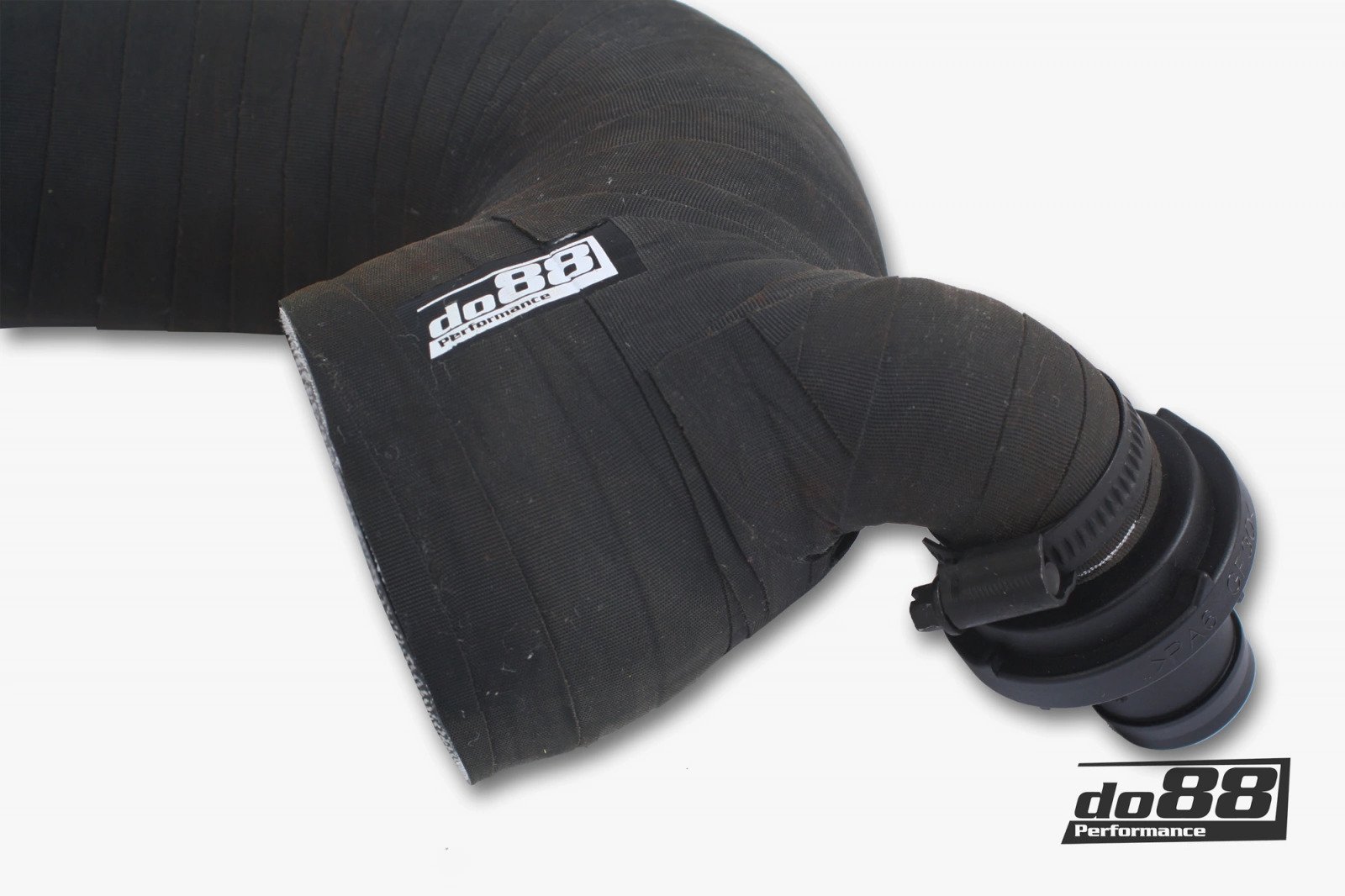 The kit comes with hoses in a textured black finish, CNC-machined adapters towards the turbos and top-quality, black hose clamps. The hoses are adapted to the OE air filter boxes, or the do88 air filter system with 66 mm connections.