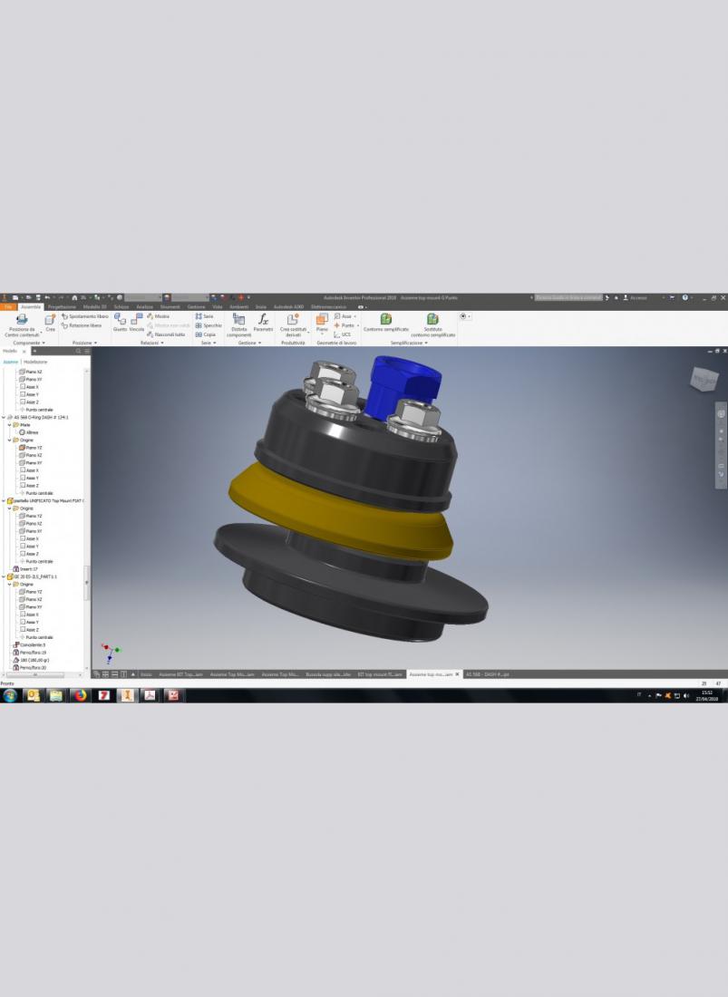 The top mount is interposed between the bumper and the dome of the body. In order to improve steering precision and the structural strength of the system, in particular in case of rigid structure, it is recommended to replace this one with a particular motorsport derived. The improvement consists in replacing the rubber with a ball joint uniball. Besides increasing the precision of the steering system on uniball allows a better functioning of the spring-damper.Our kit also allows the adjustment of the caster and camber of up to about -3°: the increase of this angle allows to obtain the maximum tread of the tire to the ground during a curve challenging. The kit includes: spring plate, eccentric adjustment, uniball eccentric support, uniball motorsport, ball bearing noise reduction and a special nut. All parts are made of ERGAL made from billet