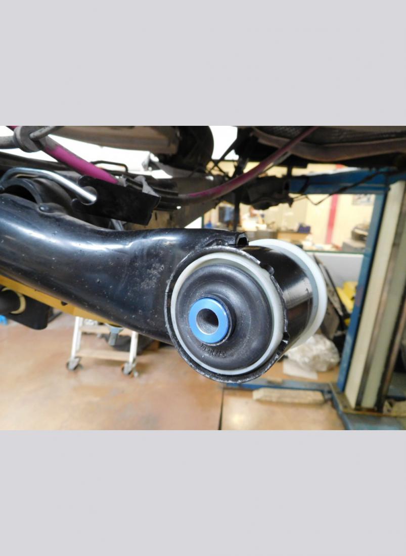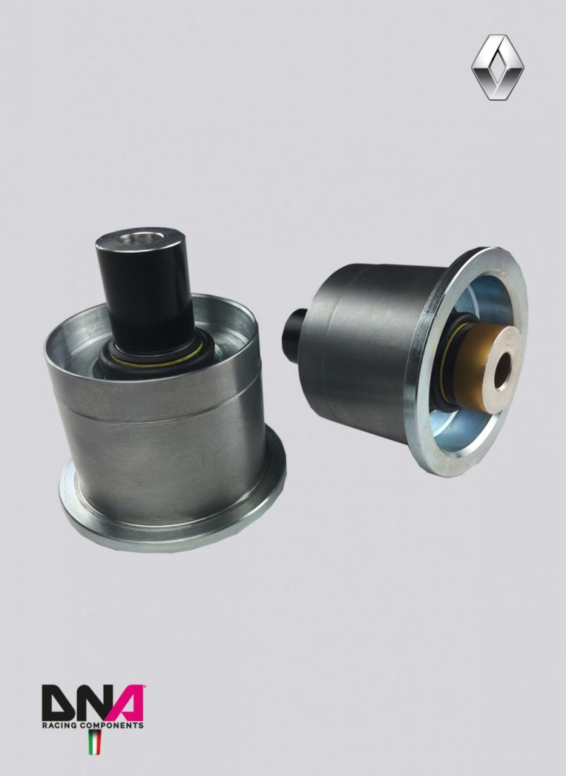 The rear axle of stock cars is mounted to the body via silentblocks. These latter allow a limited movement that generates imprecision of the rear train, in particular in braking and insertion curve. This phenomenon is very detrimental in sports driving and, in addition to increasing the lap time, makes driving difficult and sometimes dangerous. Our kit replaces these rubber elements, with motorsport uniball and spacers, all made of anodized Ergal and includes all the components needed for the installation.