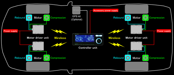 Additional automatic speed-sensitive damping force adjustment feature is available with the use of optional "GPS kit" (sold separately).