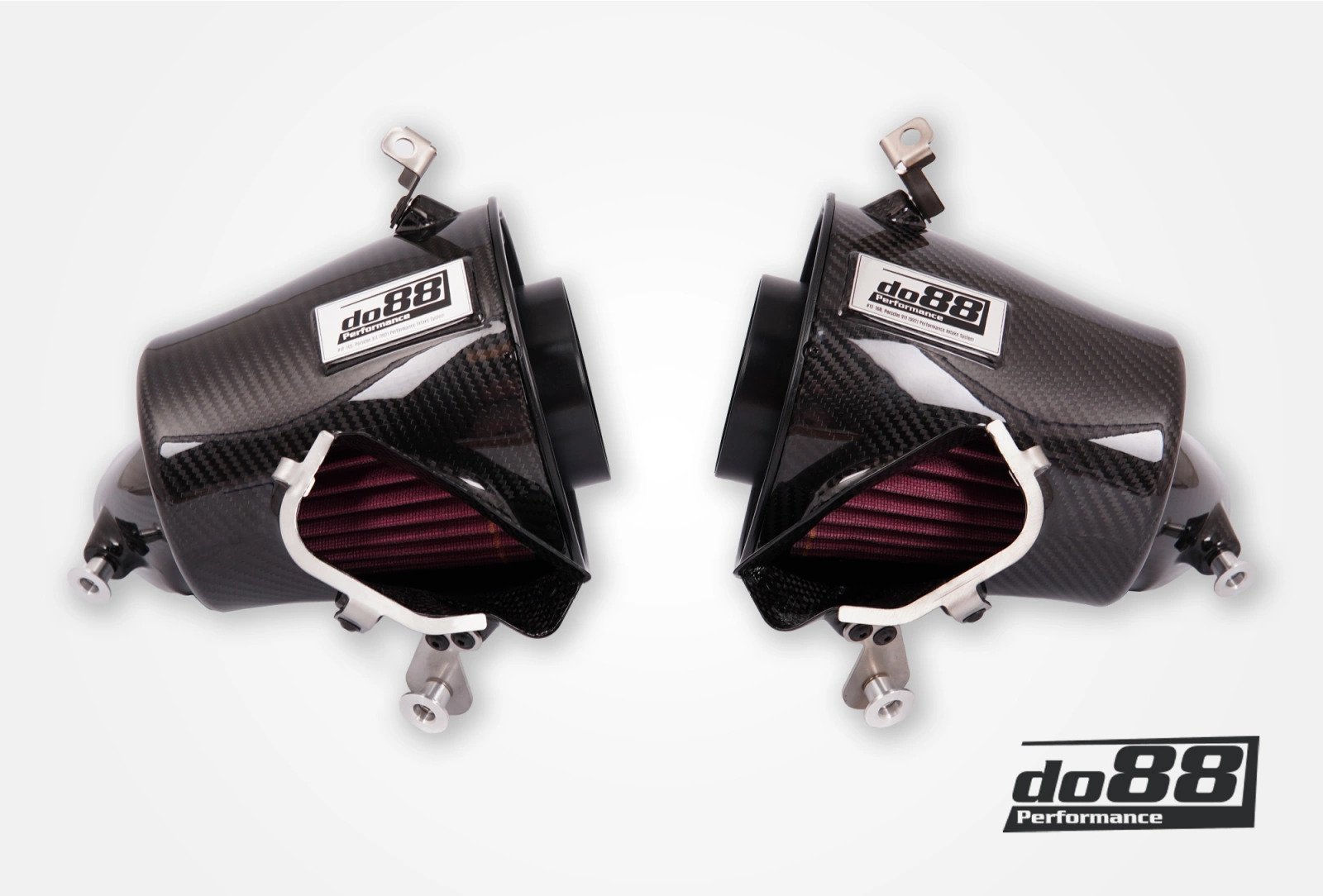 The do88 air intake kit is made from vacuum infused, prepreg carbon fiber of the finest quality. To boost the airflow, the kit really takes advantage of the full space provided within the car´s structure. The carbon housings are made to accommodate a big, cone filter from renowned BMC, featuring their finest filter media at hand. The do88 intake kit replaces the entire OE air filter box and is a true performance upgrade!