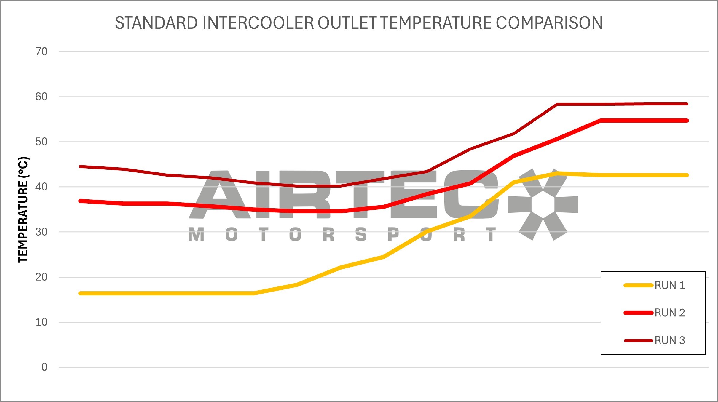 Together with our high-flow, moulded one-piece cast end tanks to ensure flow is directed correctly and efficiently, the Stage 3 AIRTEC Motorsport intercooler also features an enlarged 60mm inlet to match the outlet, and together the kit offers much greater efficiency and volume over both the standard and our Stage 1 intercoolers, which it proved during testing.